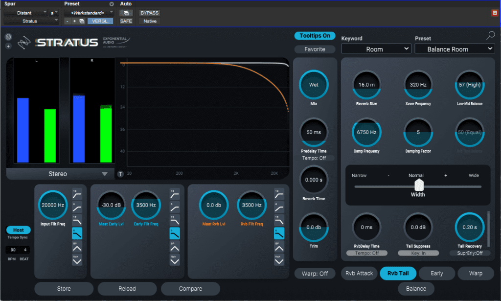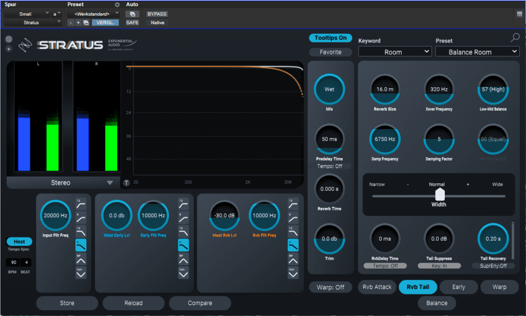 Ein sehr mächtiger und gut klingender Reverb, den ich häufig verwende, ist der Pro-R von Fabfilter. Er bietet neben den benötigten Parametern eine Vielzahl weiterer, mit denen sich realistisch klingende Raum-Staffelungen erzeugen lassen. Auch Eponential audio Stratus ist ein empfehlenswerter Hall für diese Disziplin, allerdings deutlich komplexer in der Handhabung. Mehr Übersicht und gut klingende Algorithmen bietet ReVibe II (Avid) oder Steinbergs Revelation, die ich ebenfalls ab und zu verwende