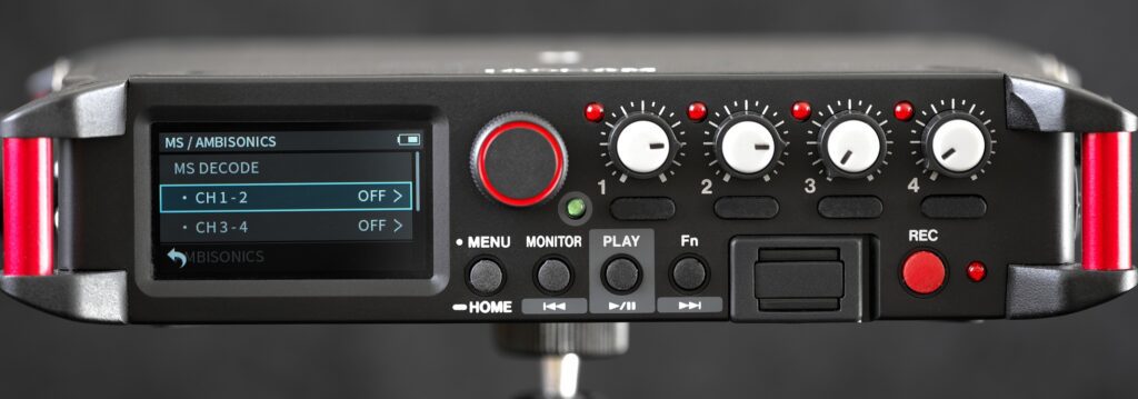 Zum guten Ton der professionellen Tascam Fieldrecorder gehört ein integrierter M/S-Decoder. Ambisonic-Formate beherrscht der FR-4AV4 zudem.