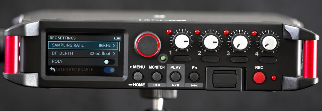 Sinnvollerweise sollten Aufnahmen mit 32 Bit-Fließkomma-Auflösung angefertigt werden. In puncto Abtastraten knackt Tascam schon länger die 96 Kilohertz-Grenze: 192 kHz-Auflösung ist möglich.