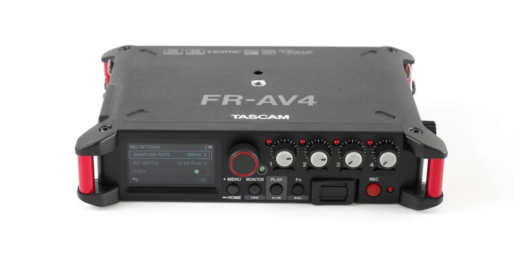 Der Tascam FR-AV4 ist ein professioneller, vierkanaliger Fieldrecorder, der dank 32Bit-Fließkomma-Auflösung ausgezeichnete Aufnahmen ermöglicht, dank seiner Timecode-Optionen und der HDMI-Synchronisierung mit modernen, 4K/8K-Hybridkameras super zusammenarbeitet und zum besten Bild Ton von vergleichbar hoher Güte liefert.