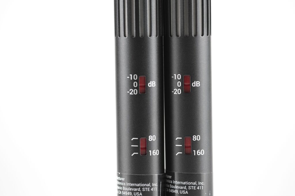 Ungewöhnlich üppig ist die elektronische Ausstattung des Mikrofons: So gibt es ein zweistufiges Hochpassfilter mit den Eckfrequenzen 80 und 160 Hertz und einer Steilheit von 6dB/Oktave. Eine solche Opulenz findet sich üblicherweise bei den Mitbewerben nicht. Bemerkenswert ist dabei, dass die zweite Stufe mit 160 Hertz recht hoch ansetzt. Laut Hersteller diene das Hochpassfilter auch nicht allein der Herausfilterung von Störgeräuschen wie Tritt- und Körperschall, sondern auch zur Dämpfung des Nahheitseffekts – wir haben es immerhin mit Druckgradientenempfängern zu tun – bei Nahmikrofonierung. Wie? Nahmikrofonierung? Mit einem – wie sie auch genannt werden – „Shotgun“-Mikrofon? Wo wir doch vor allem schlecht zugängliche Schallquellen aufs Korn nehmen wollen? Genau – und warum nicht. Zumal das sE6160-Paar, sollte es so ausgewogen und unverfälscht klingen wie herstellerseits verhießen, bei der Nahmikrofonierung von Instrumenten gut aufgestellt sein könnte. Wir werden hören. Zu gegebener Zeit.